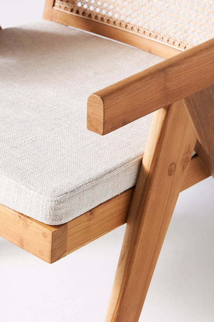 Introduce natural beauty into your home with the Cane Accent Chair, crafted from reclaimed acacia wood. Its caned back and elegant curves highlight the unique grain patterns of the wood, perfect for brightening up sun rooms, cozy reading corners, and modern living areas.