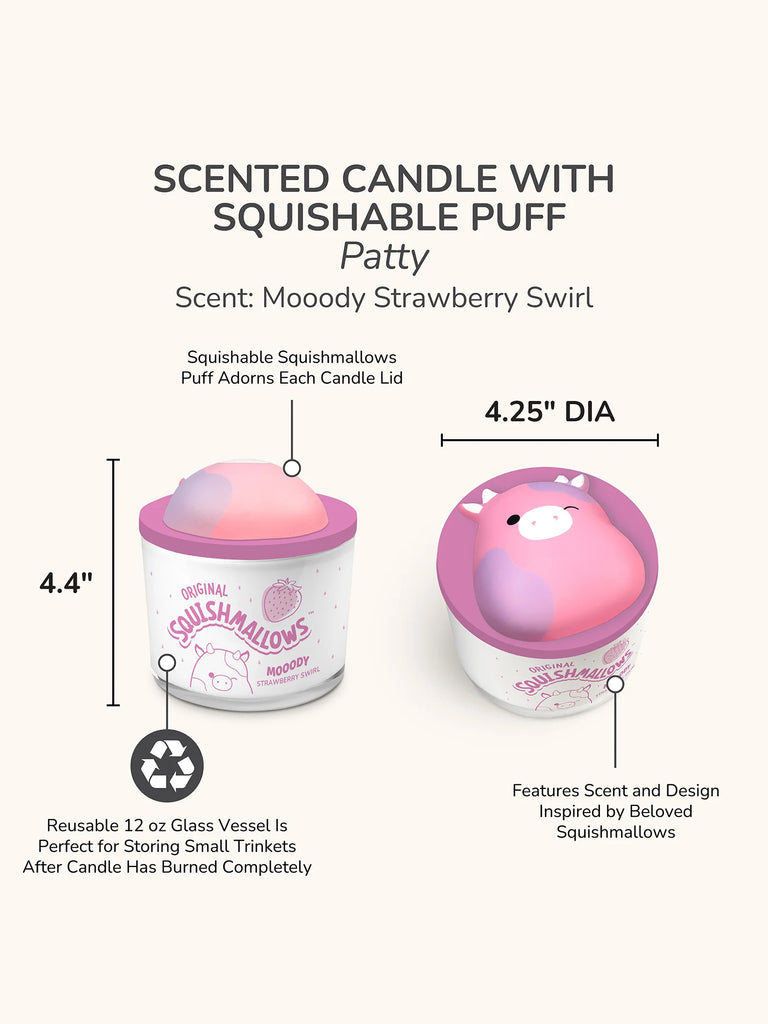 When it comes to creating a cozy atmosphere, Studio Oh! has you covered with delightful candles featuring everyone's favorite—Squishmallows! With scents inspired by unique Squishmallows, these large 12 oz candles, with a 38-hour burn time, will provide a scent haven in your home, office, or bedroom. Reuse the adorable container and its lid to hold small trinkets, office supplies, and more!