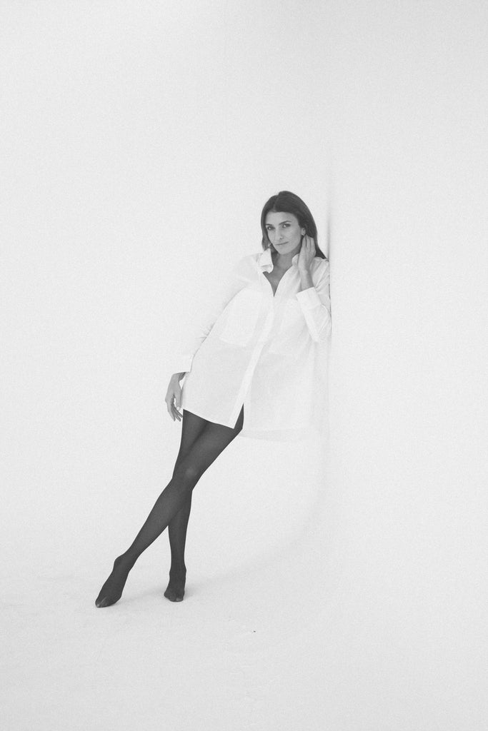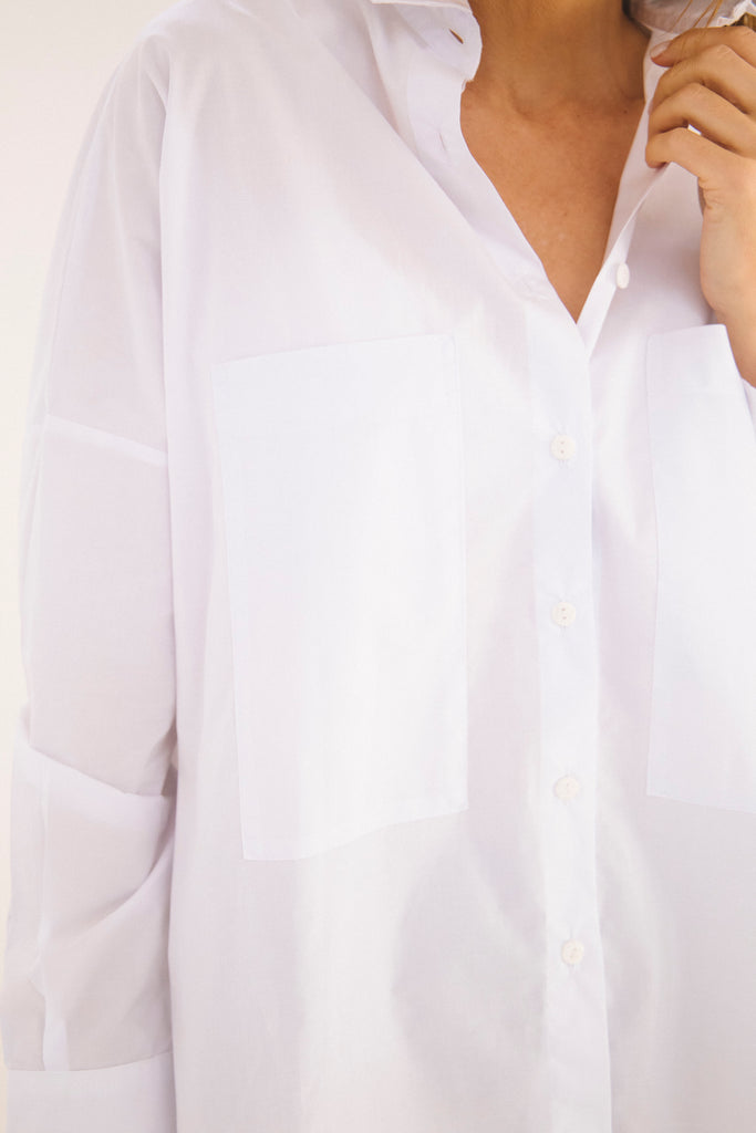 Long shirt with front pockets and side slits. Yoke and high-low hem at the back.