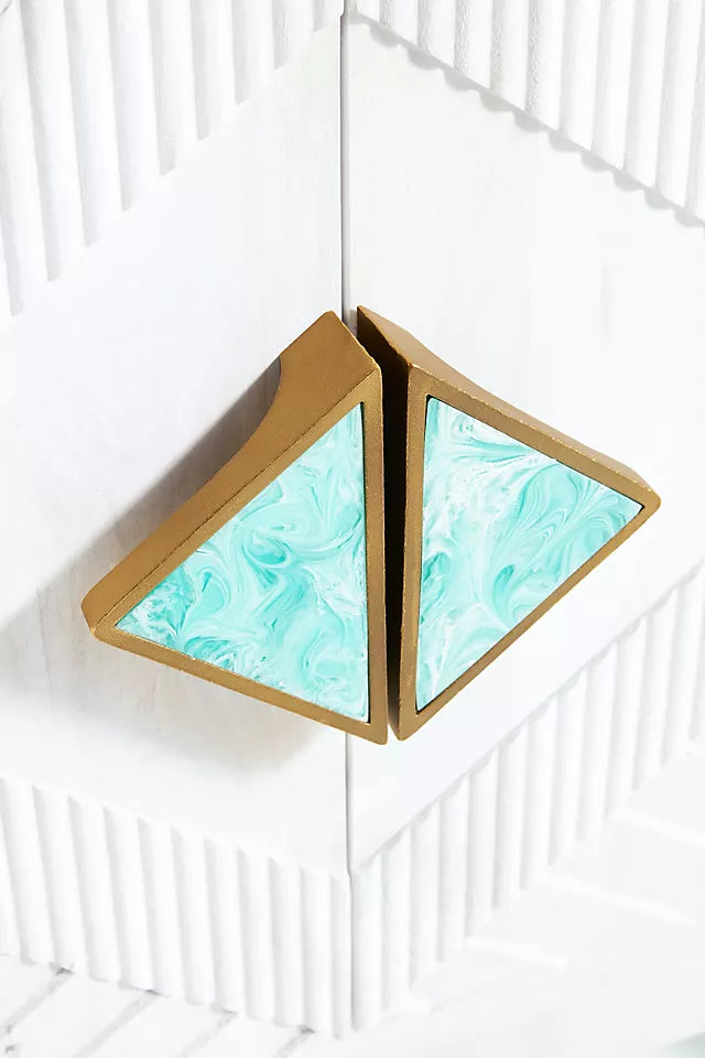 - Brass-plated aluminum and agate stone hardware