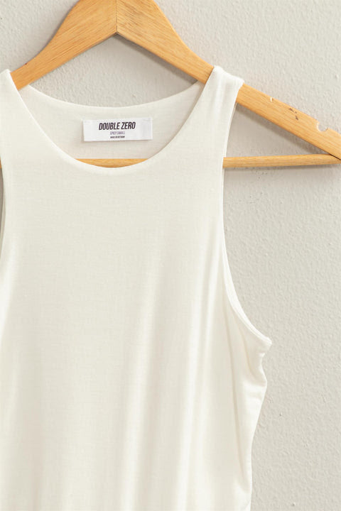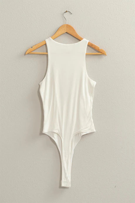 Let your effortless style take a stylish turn with this bodysuit. It begins with a round neck and a pair of tank straps. Fitted bodice falls to the thong bottoms for a complete look. Style yours with high waisted denim jeans.