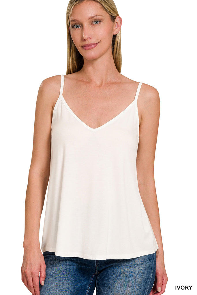 WAY V AND SCOOP NECK REVERSIBLE SPAGHETTI CAMI