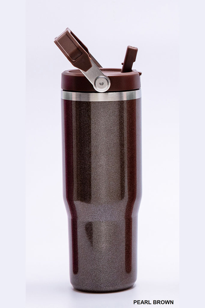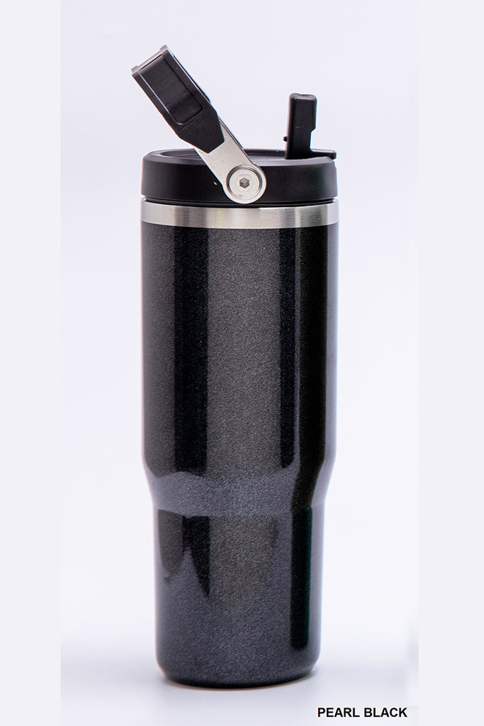 STAINLESS STEEL PEARL FLIP STRAW TUMBLER