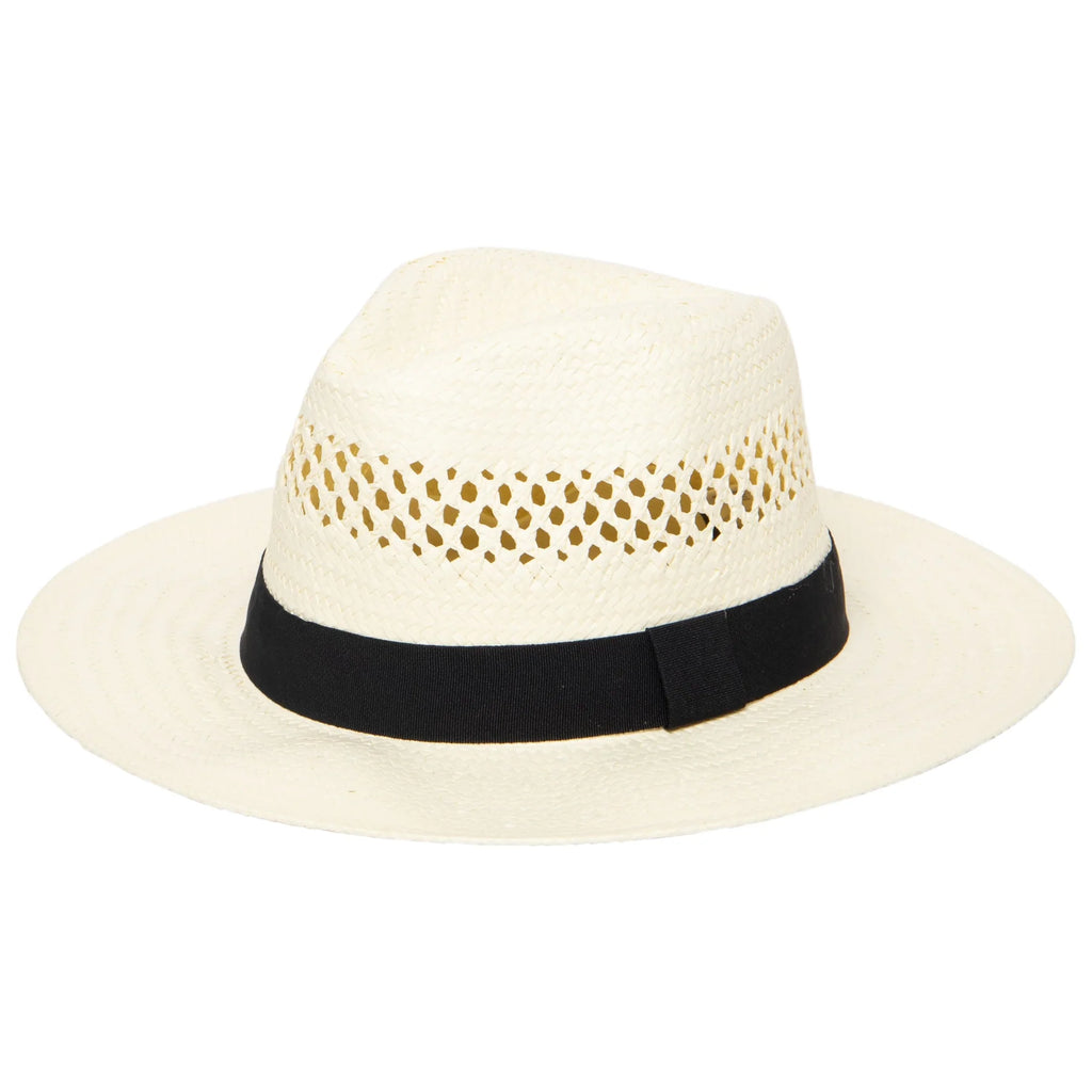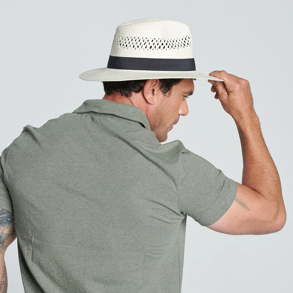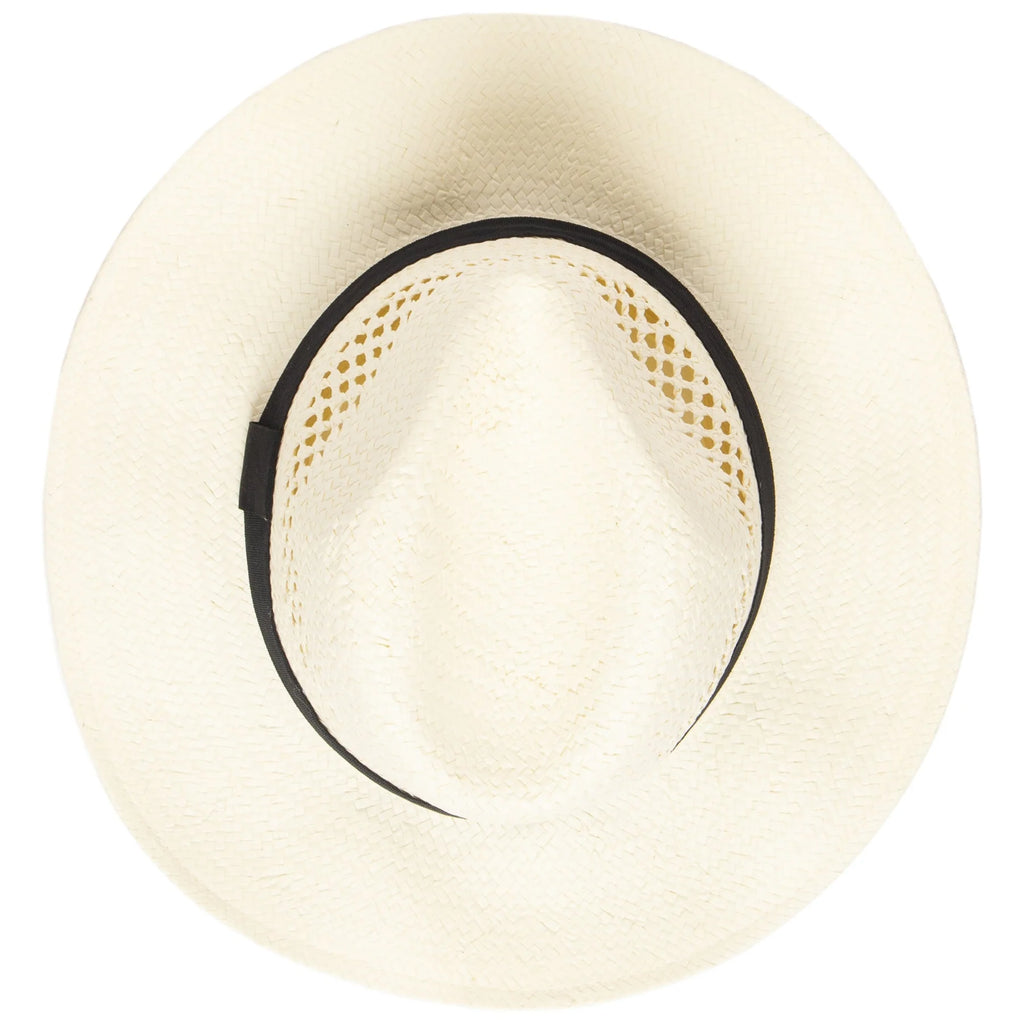 For a stylish way to protect yourself from the sun, wear this beautifully made woven paper fedora! Its' vented crown and stretch band offers maximum comfort while staying in the sun all day.