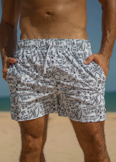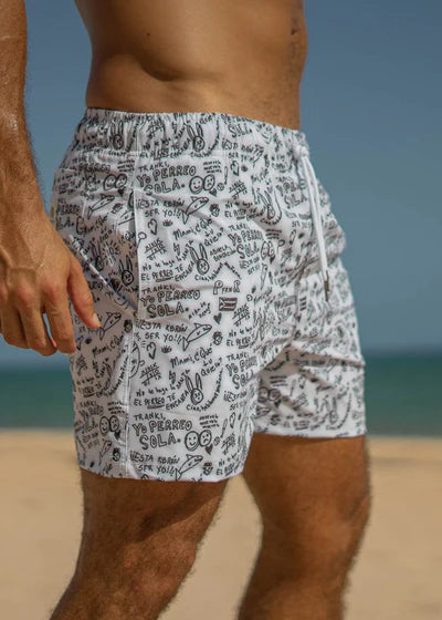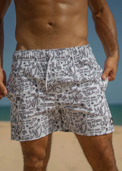 The embodiment of vibrant rhythm and playful style. Our Perreo Swim Short pays homage to the lively beats of Reggaeton and the most iconic symbols and phrases of this urban style, allowing you to showcase an energetic design. Capturing the perfect blend between music style and beachside comfort, designed to make a splash on and off the dance floor.