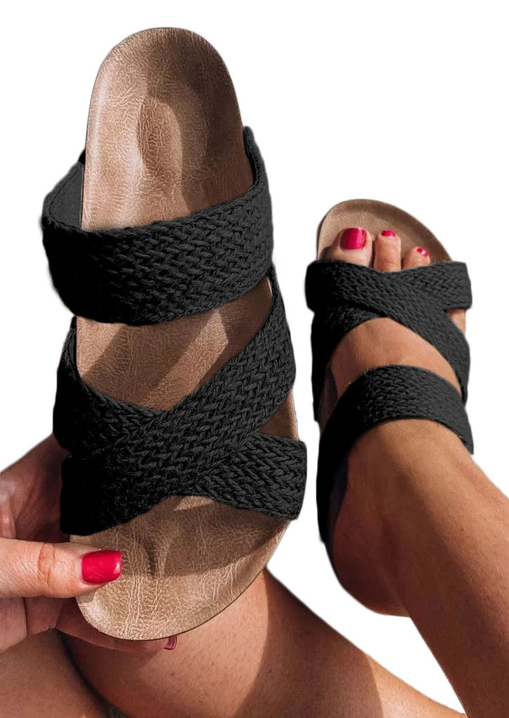 Black Woven Cross Criss Hollowed Slip-On Slippers
