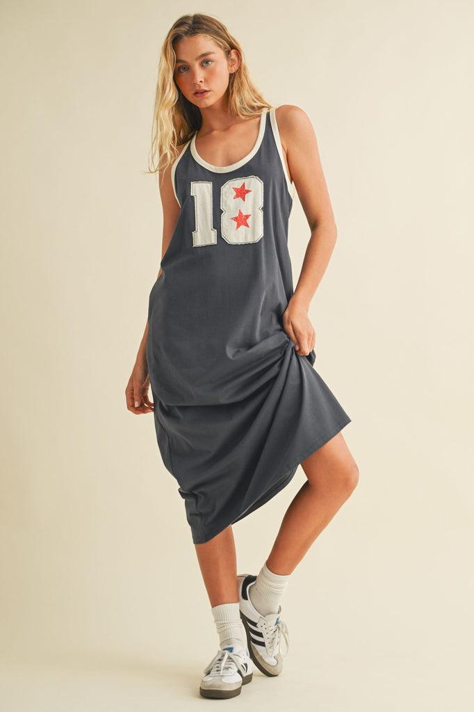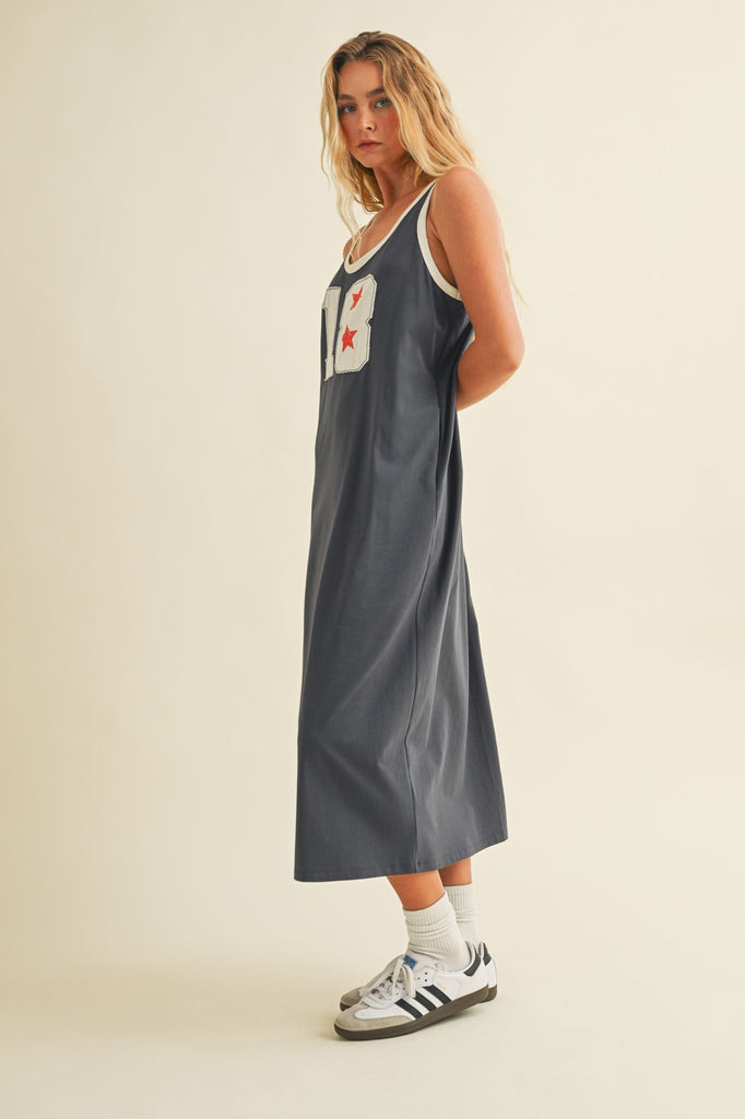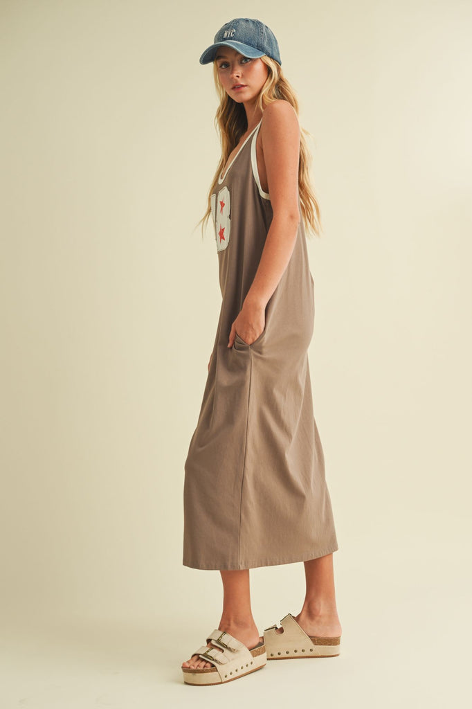 PATCHED FRONT SLEEVELESS T-SHIRT DRESS