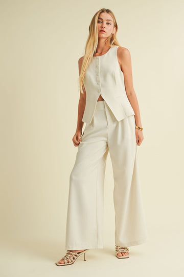 PINTUCK WIDE LEG PANTS - Linen / S is backordered and will ship as soon as it is back in stock.